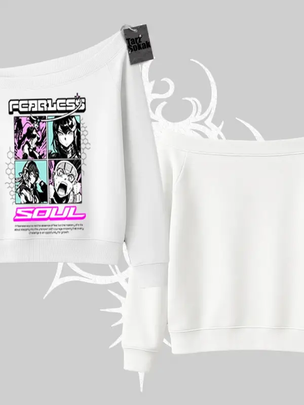 Kayık Yaka Sweatshirt Fearless Soul Anime Kolaj Baskılı