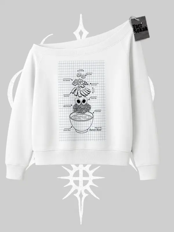 Kayık Yaka Sweatshirt Japon Mutfağı Umami Temalı Baskılı
