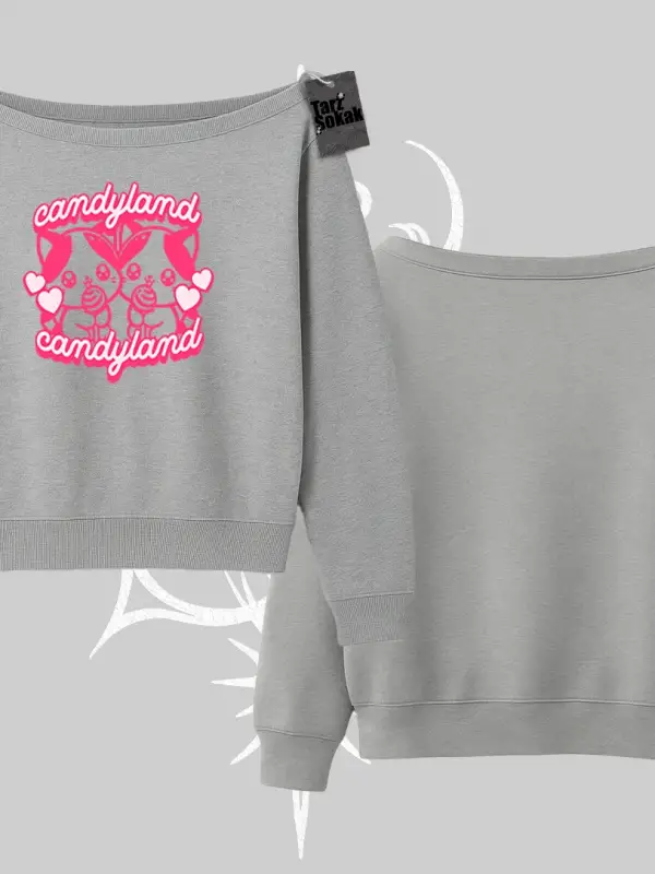 Kayık Yaka Sweatshirt Oversize Anime Kız Baskılı