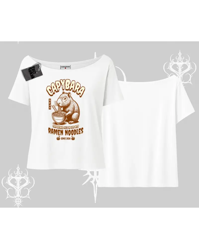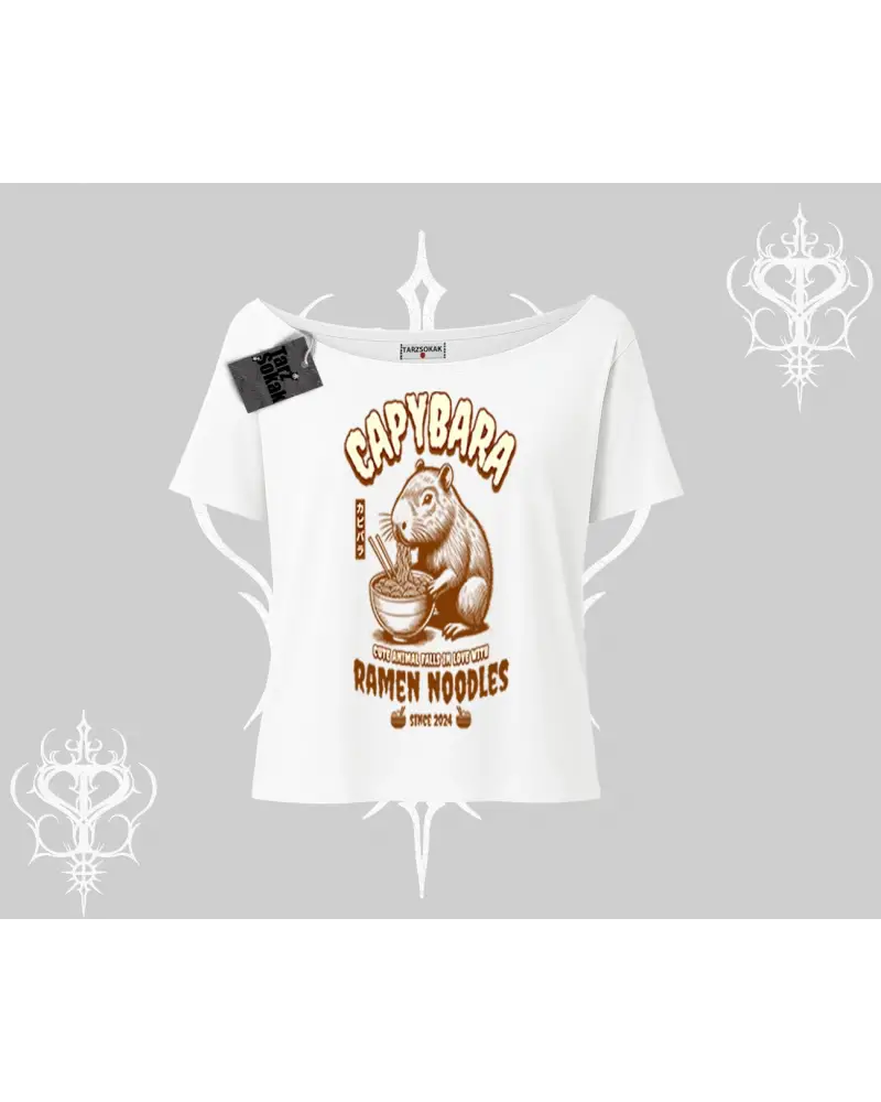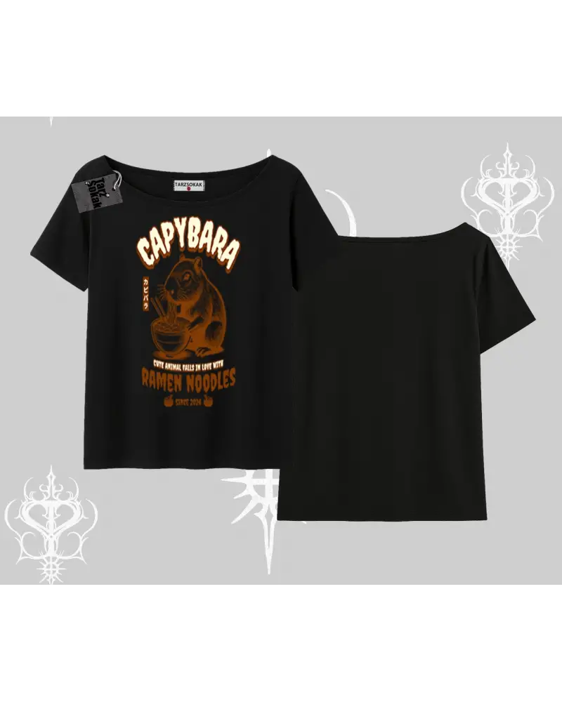 Kayık Yaka Tshirt Cute Capybara Enjoying Ramen Noodles Artwork modeli; sokak modası, günlük kullanım ve trend kombinler için ideal yapısıyla Tarzsokak’ta uygun fiyat ve hızlı kargo avantajıyla sunulmaktadır.