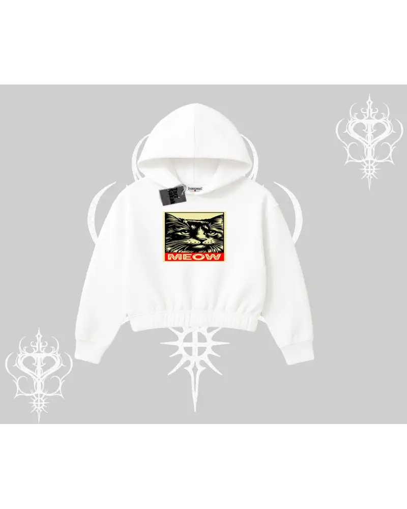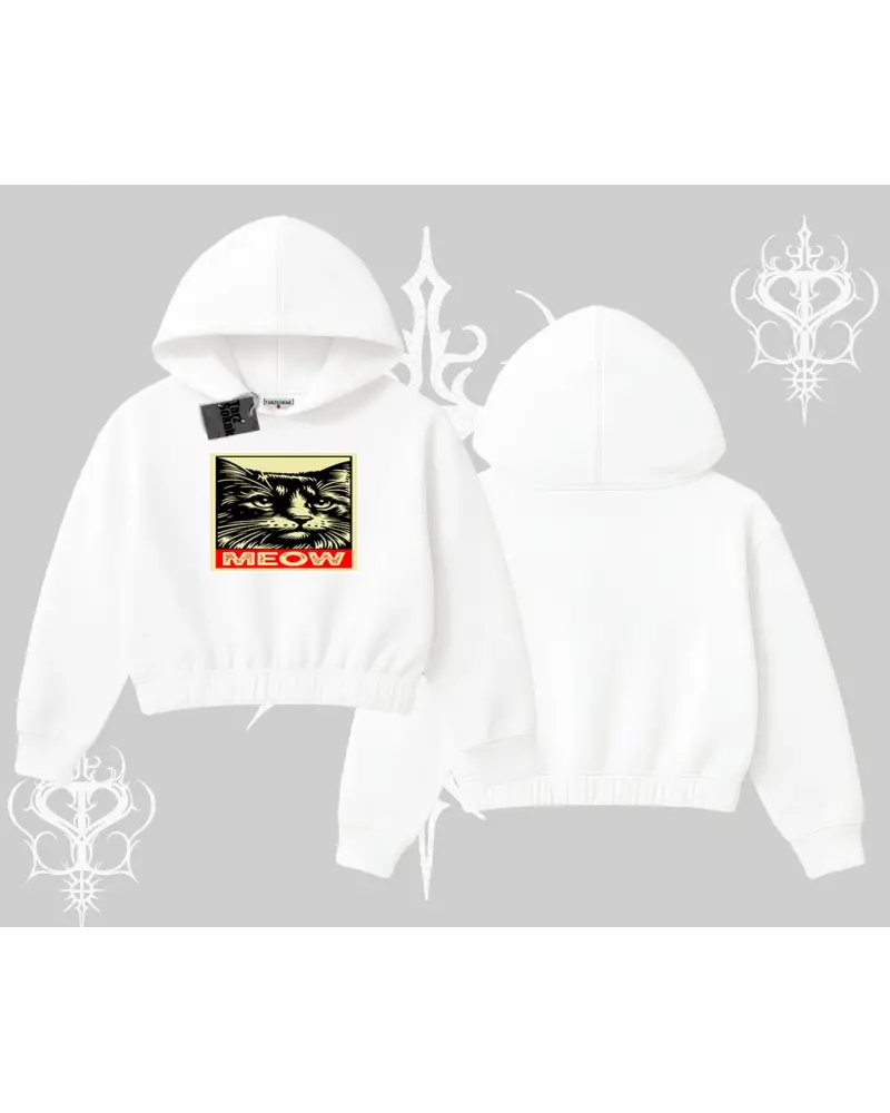 Meow Yazılı Kedi Portre Baskılı Kapşonlu Crop Sweatshirt modeli; sokak modası, günlük kullanım ve trend kombinler için ideal yapısıyla Tarzsokak’ta uygun fiyat ve hızlı kargo avantajıyla sunulmaktadır.