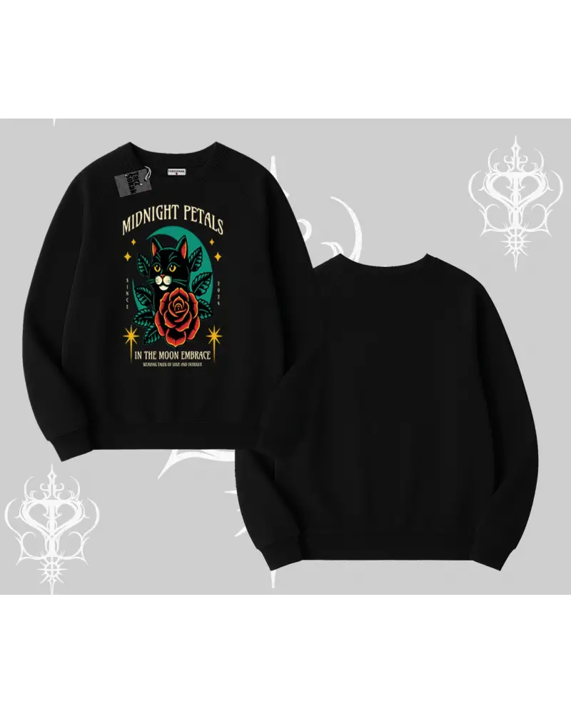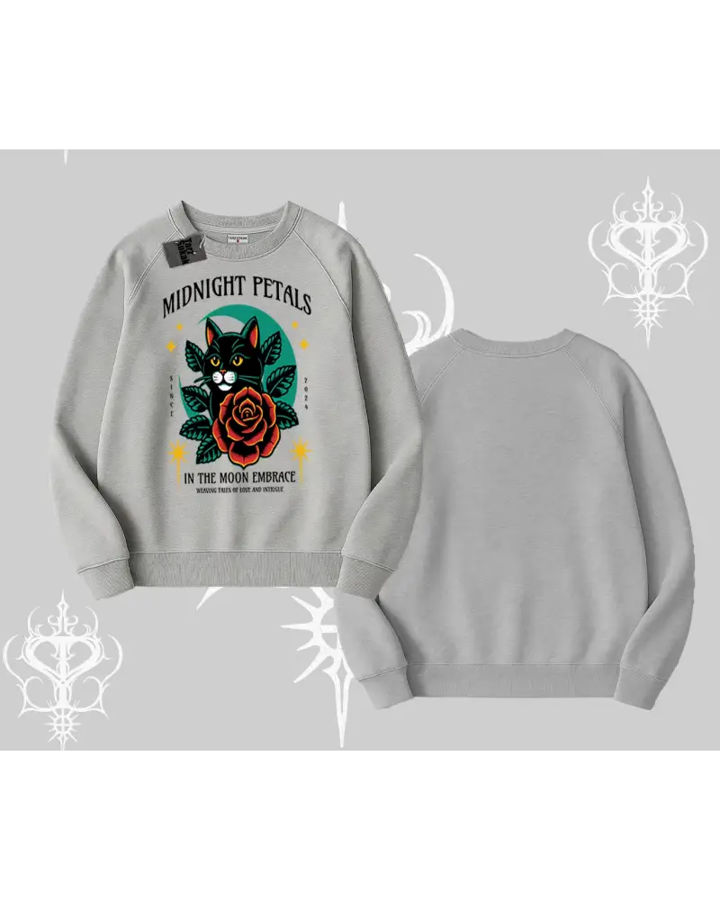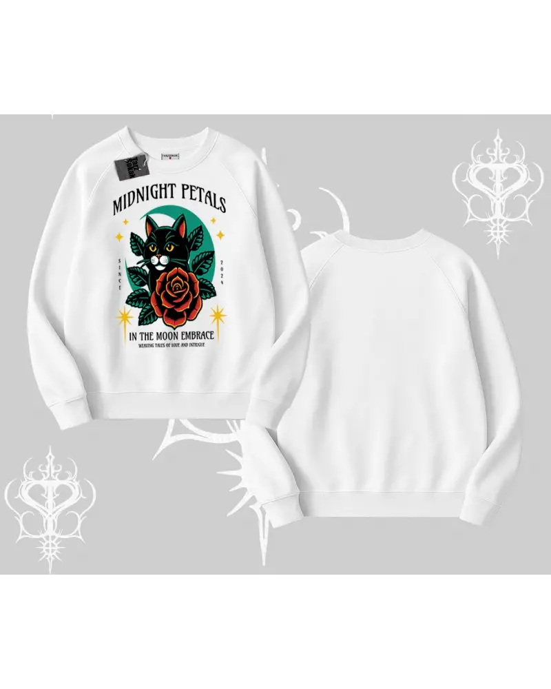 Midnight Petals Kedi Baskılı Biskilet Sweatshirt modeli; sokak modası, günlük kullanım ve trend kombinler için ideal yapısıyla Tarzsokak’ta uygun fiyat ve hızlı kargo avantajıyla sunulmaktadır.