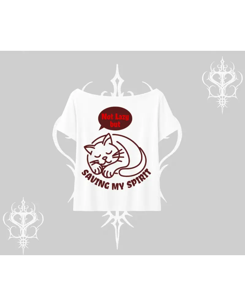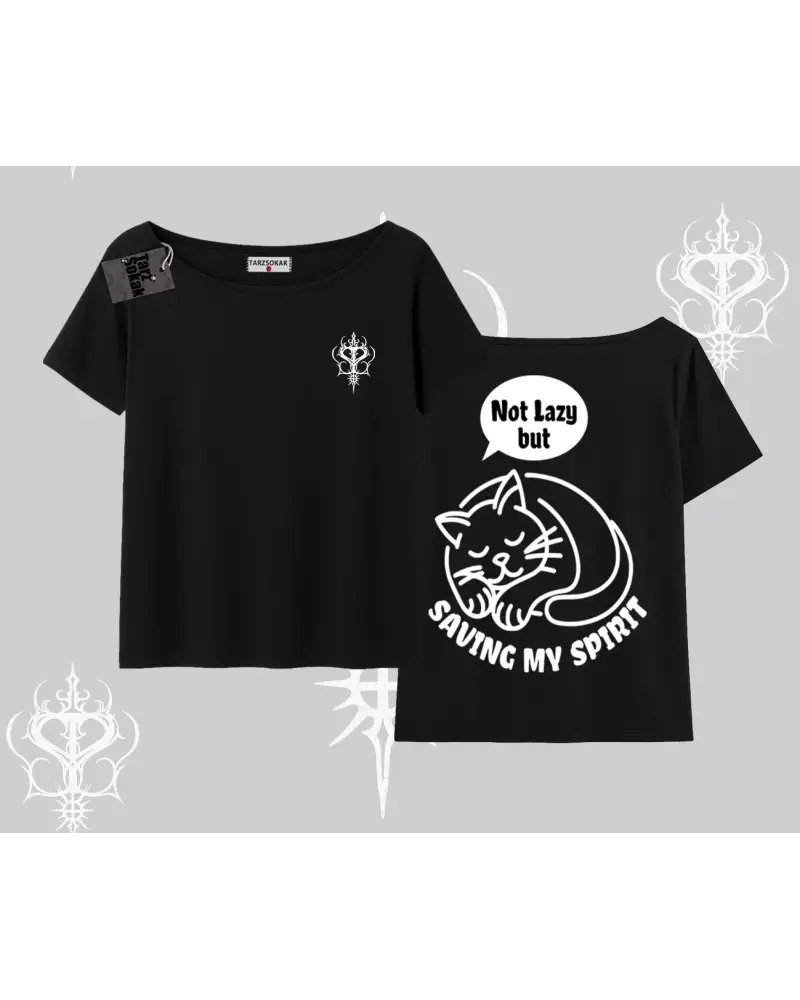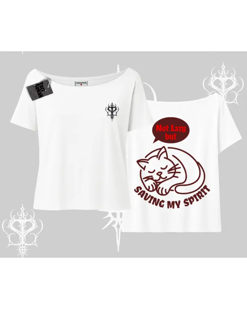 Not Lazy Saving My Spirit Kedi Baskılı Kayık Yaka Tshirt modeli; sokak modası, günlük kullanım ve trend kombinler için ideal yapısıyla Tarzsokak’ta uygun fiyat ve hızlı kargo avantajıyla sunulmaktadır.