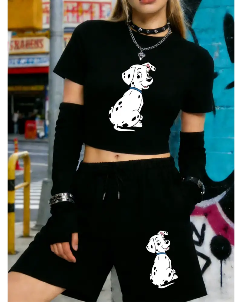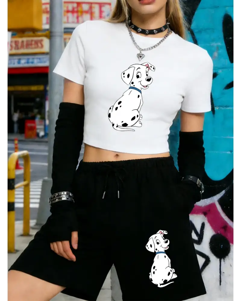 Rahat Dalmaçyalı Köpek Baskılı Babby Tees Şort Kadın İki Parçalı Set Beş Nokta Pantolon Yumuşa kaliteli malzeme ve konforlu kullanım sunan bir üründür. Günlük kullanım için ideal olup uygun fiyat ve hızlı kargo avantajıyla sunulmaktadır.