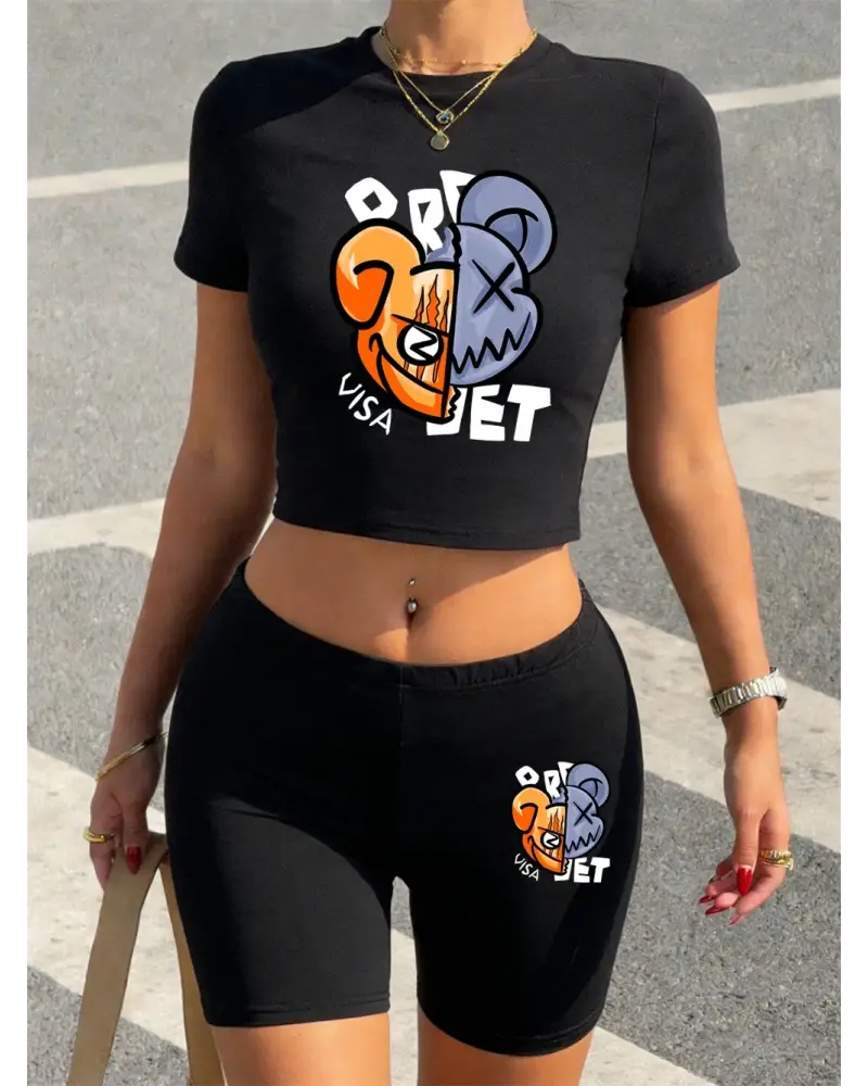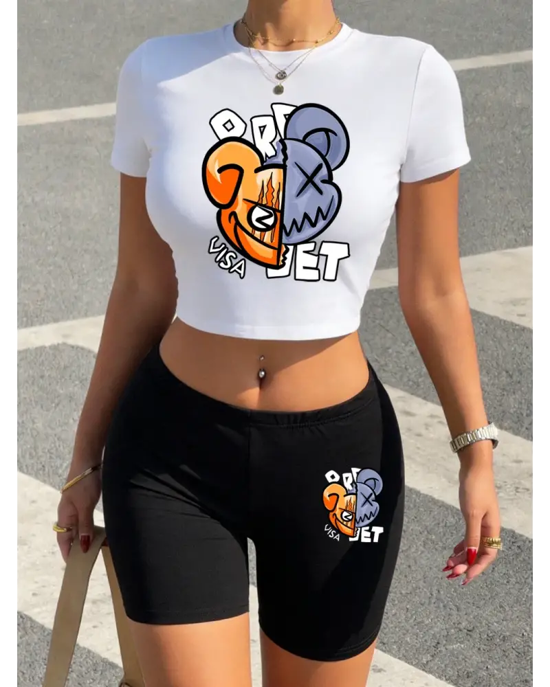 Seksi Oyuncak Ayı Kafası Baskılı Babby TeeTişört Şort Kadın İki Parça Takım Üst Pantolon Dar Kesi kaliteli malzeme ve konforlu kullanım sunan bir üründür. Günlük kullanım için ideal olup uygun fiyat ve hızlı kargo avantajıyla sunulmaktadır.