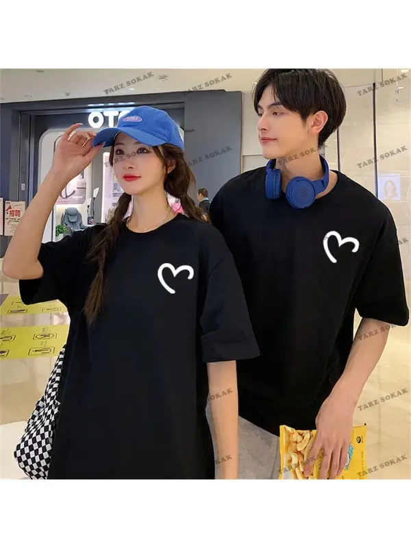 Aşkın Tarzı Sevgili Kombini T-Shirt koleksiyonu; çiftlere özel hazırlanan oversize, basic, baskılı ve minimalist tasarımları bir araya getirir. Birlikte uyumlu görünmek isteyen çiftler için ideal olan bu tişörtler, sevgililer günü, özel günler, fotoğraf çekimleri veya günlük kombinlerde mükemmel bir görünüm sağlar. Tarzsokak’ın aşk temalı T-Shirt modelleriyle, sevginizi tarzınıza yansıtın.