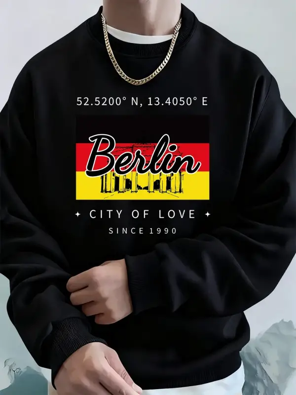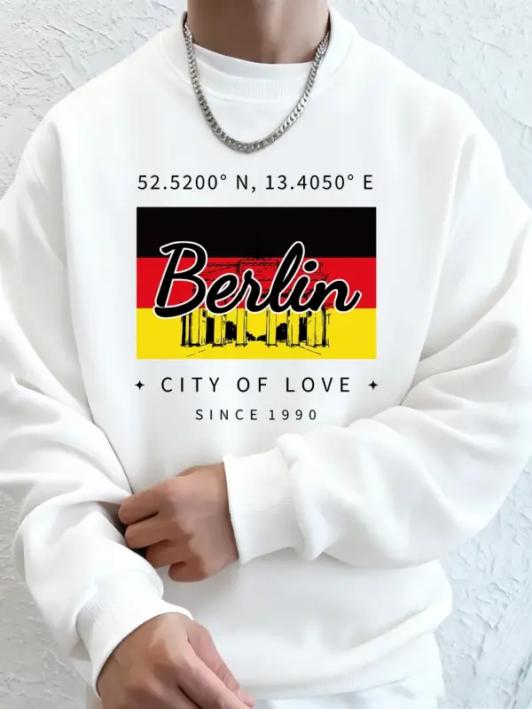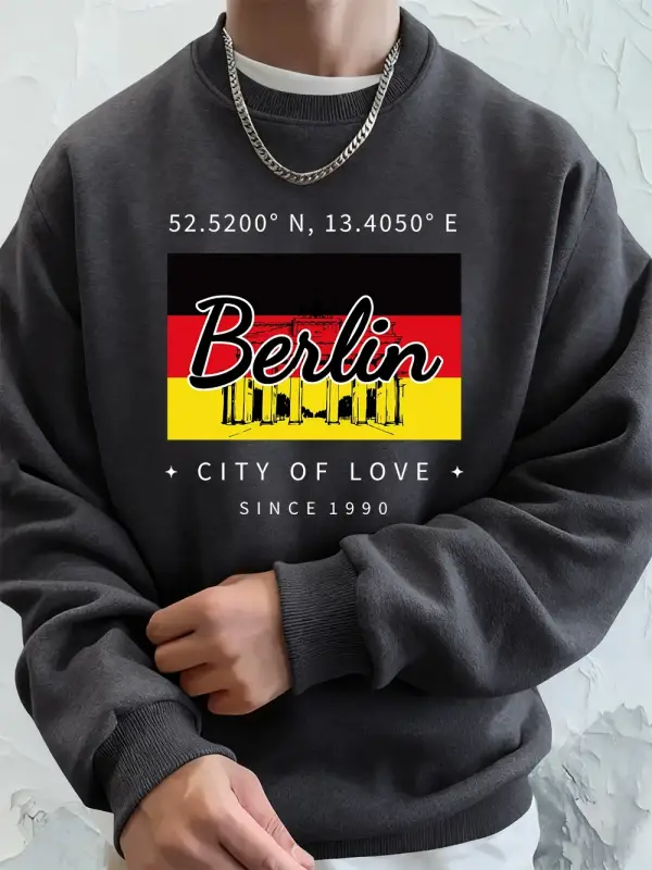 Berlin şehir aşk baskı erkek tişörtü kış polar sıcak kapşonlu kore gevşek bisiklet yaka spor