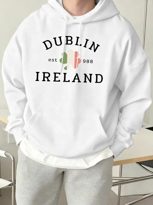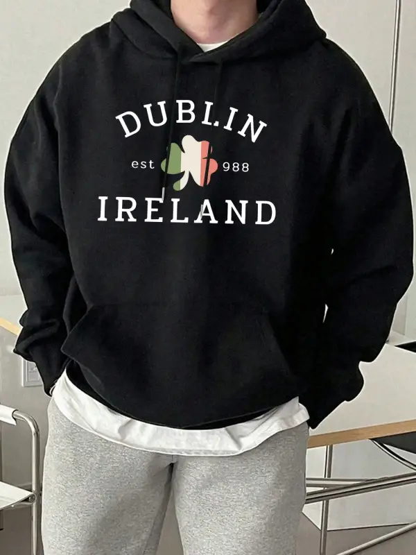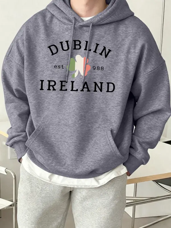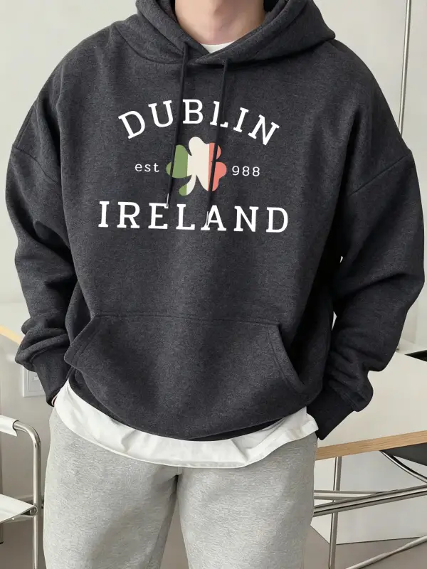 Dublin İrlanda Est 988 Baskılı Günlük Polar Kapüşonlu Üstler Erkek Sokak Giyim Bol Kıyafetler