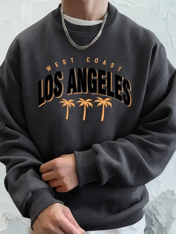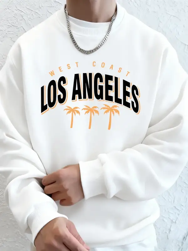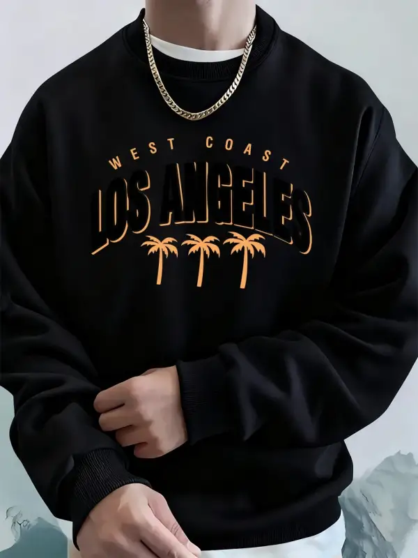 Los Angeles Batı Yakası Hindistan Cevizi Ağacı Baskılı Erkek Kapüşonlu Üstü Sonbahar Bol Swea