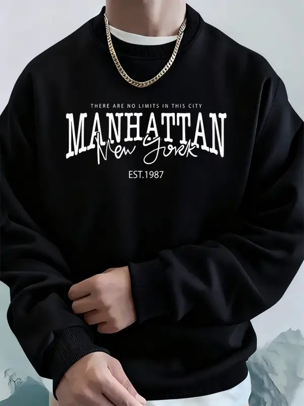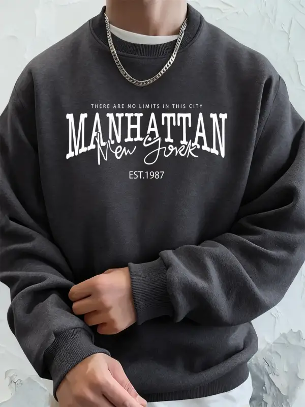 Manhattan New York Kelimeler Baskılı Erkek Kapüşonlu Üstleri Sonbahar Bol Sweatshirt Hip Hop