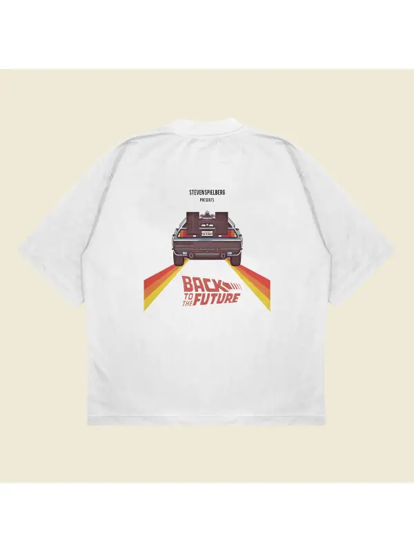 Back To The Future Baskılı Oversize Unisex Pamuklu Nefes Alan Kalın Kumaşlı