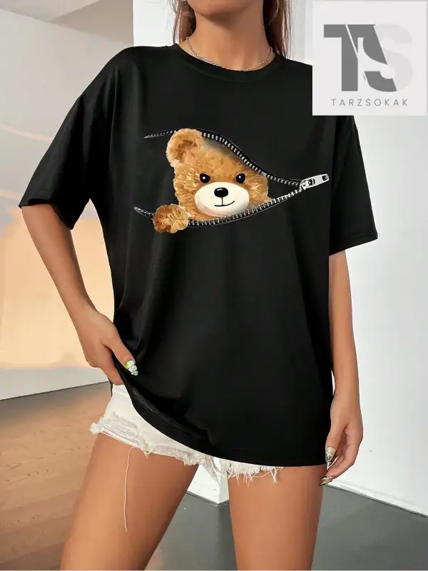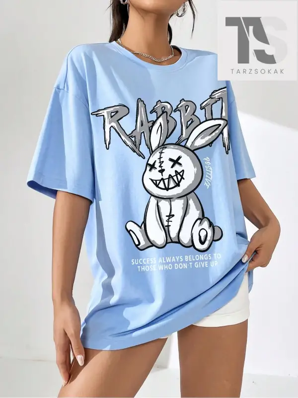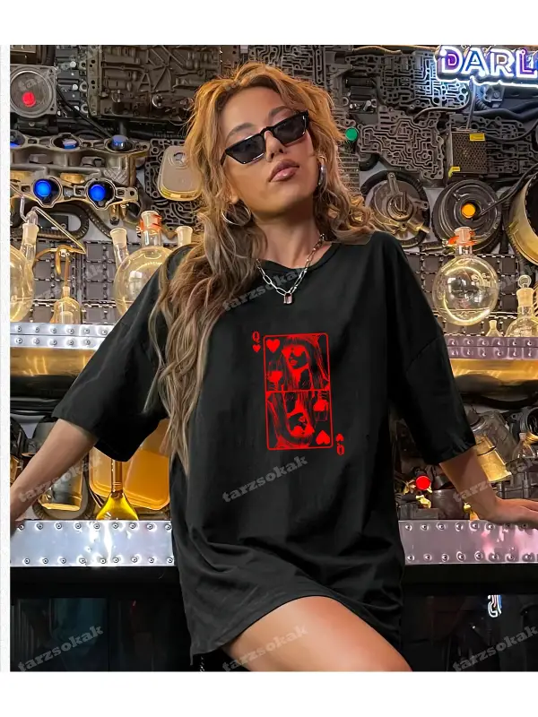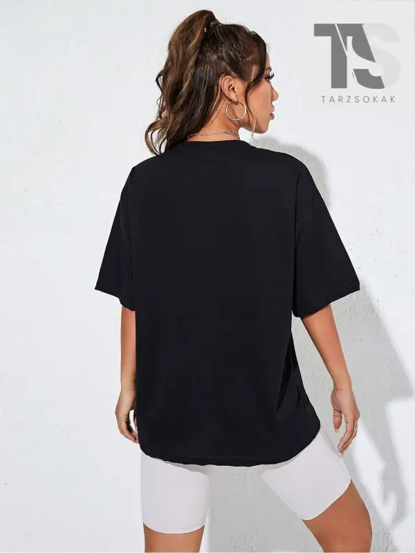 Harfli Grafik Düşük Omuz Oversize Tişört