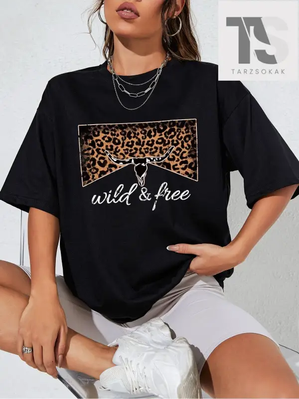 Western Cowgirl Güneş ve Slogan Grafikli Düşük Omuz Tişörtü