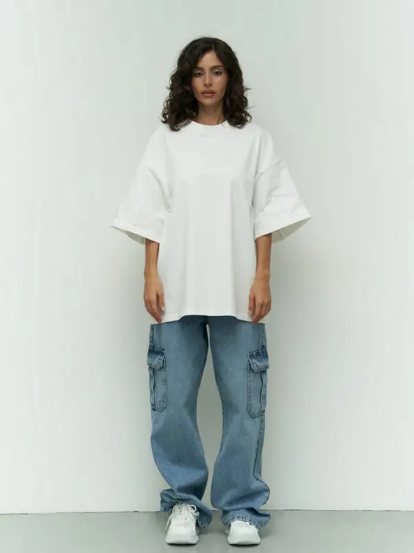 Erkek Ekru Kapüşonlu Fermuarlı 3 Üç İplik Polar Kanguru Oversize Salaş Sweatshirt Beyaz
