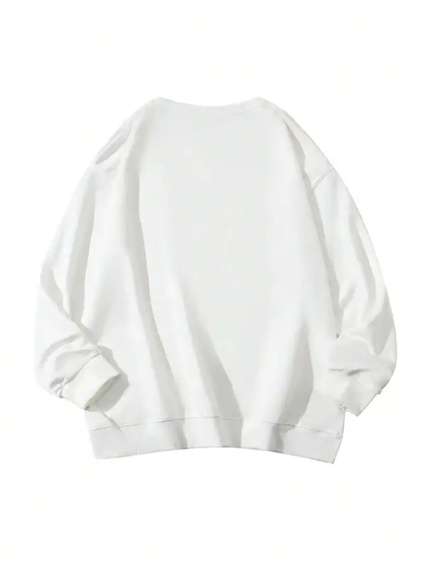 Letter & Tennis Racket Print Drop Shoulder Sweatshirt Beyaz