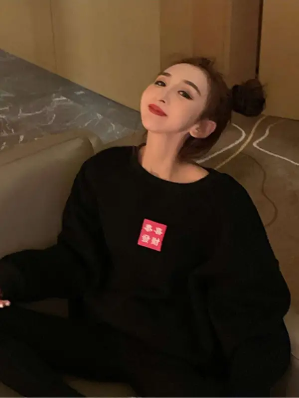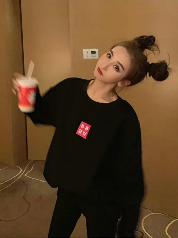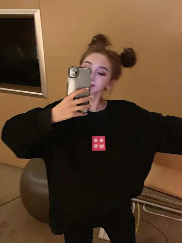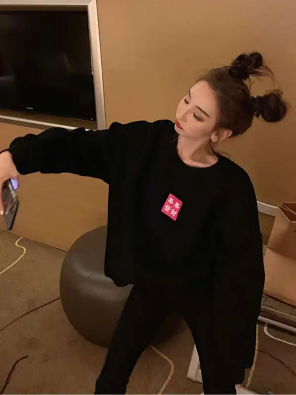 Honeyspot Chinese Character Pattern Drop Shoulder Pullover Siyah