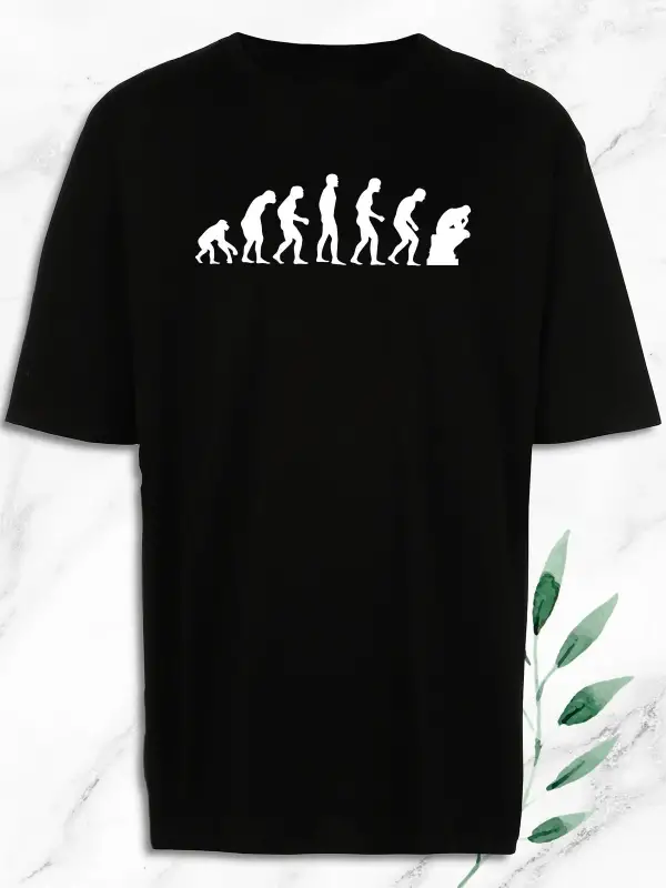 Oversize Evolution Evrim Baskılı Siyah Tişört