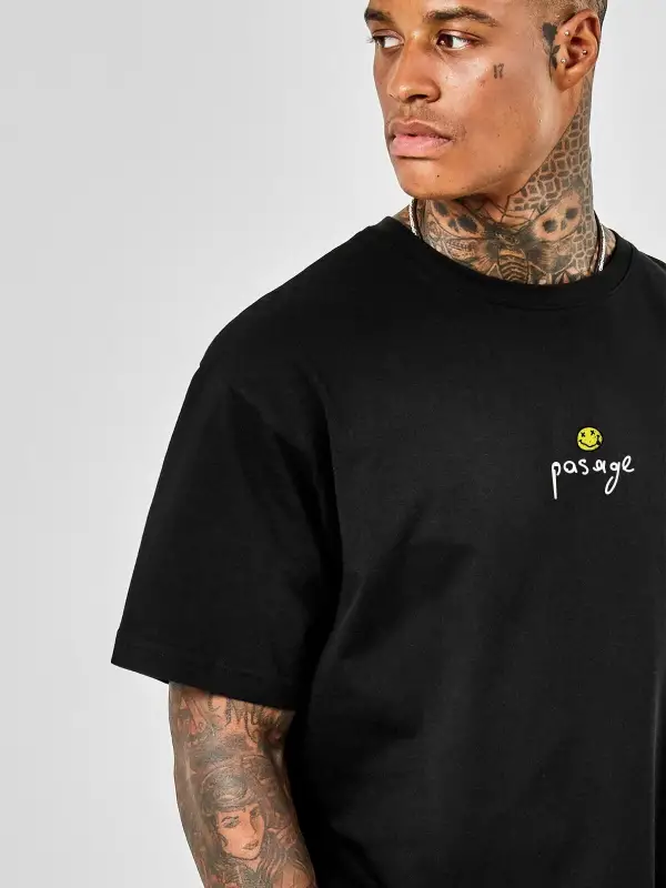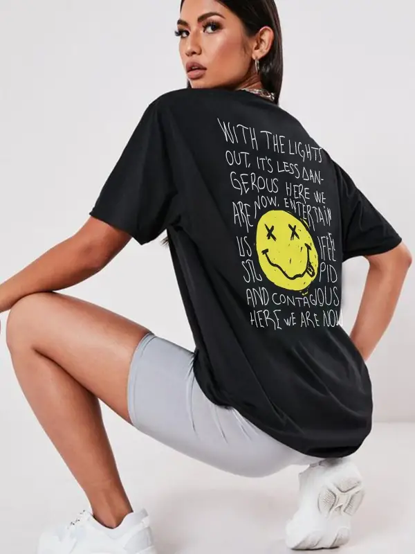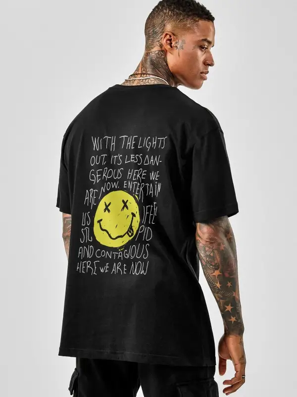 Oversize Nirvana Type Baskılı Siyah Tshirt NRAGE206