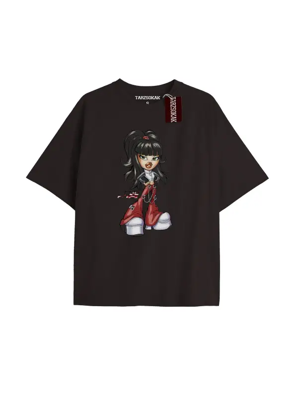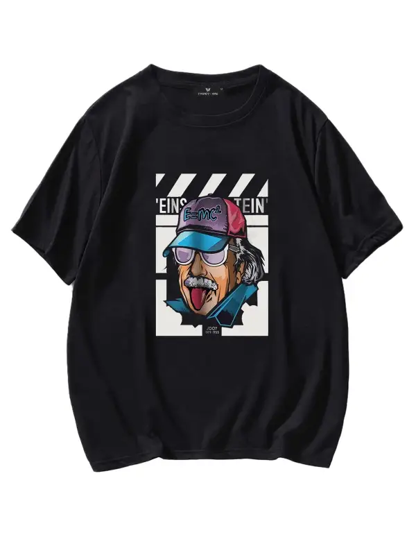 Unisex Siyah Einstein Baskılı Oversize Tişört