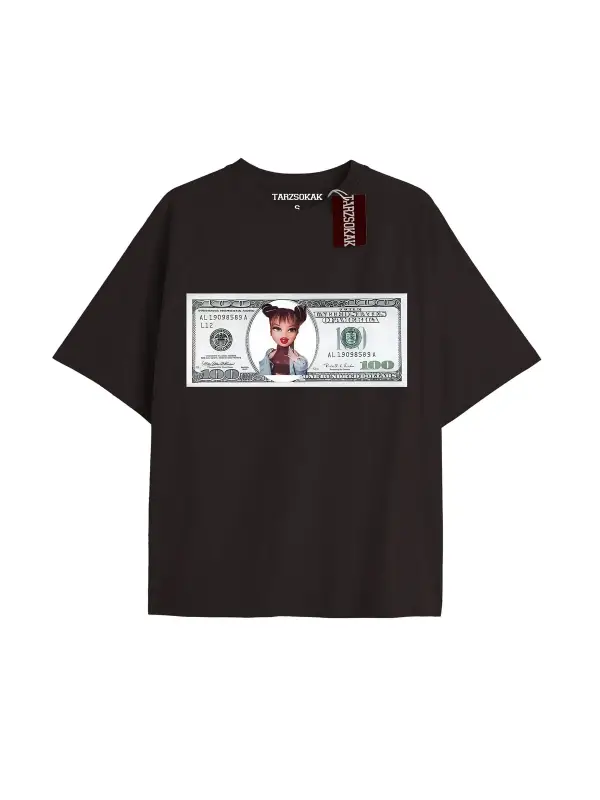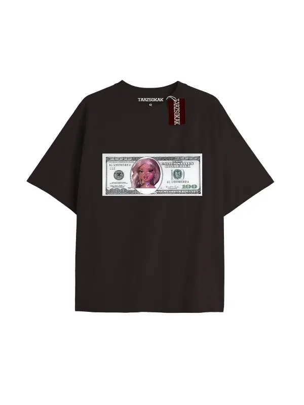 Siyah Paris Baskılı Oversize Bisiklet Yaka T-shirt