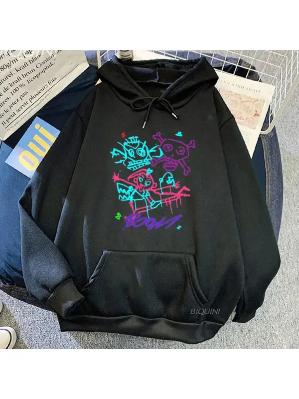 Beyaz Hoody Boom Maymun Jinx Arcane Hahaha Karikatür Komik Grafik Sudade