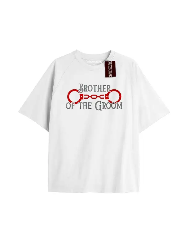 BROTHER OF THE GROOM Unisex Oversize Yazılı Tshirt BEYAZ