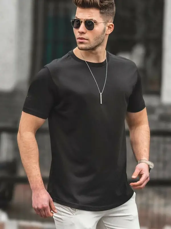Erkek Siyah Basic Licralı Slimfit T-shirt