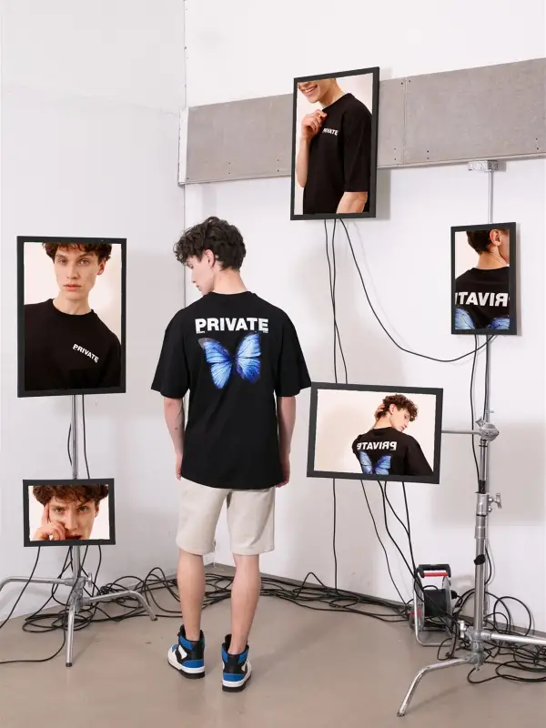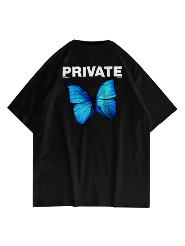 Unisex Butterfly & Letter Graphic Tasarım T-shirt