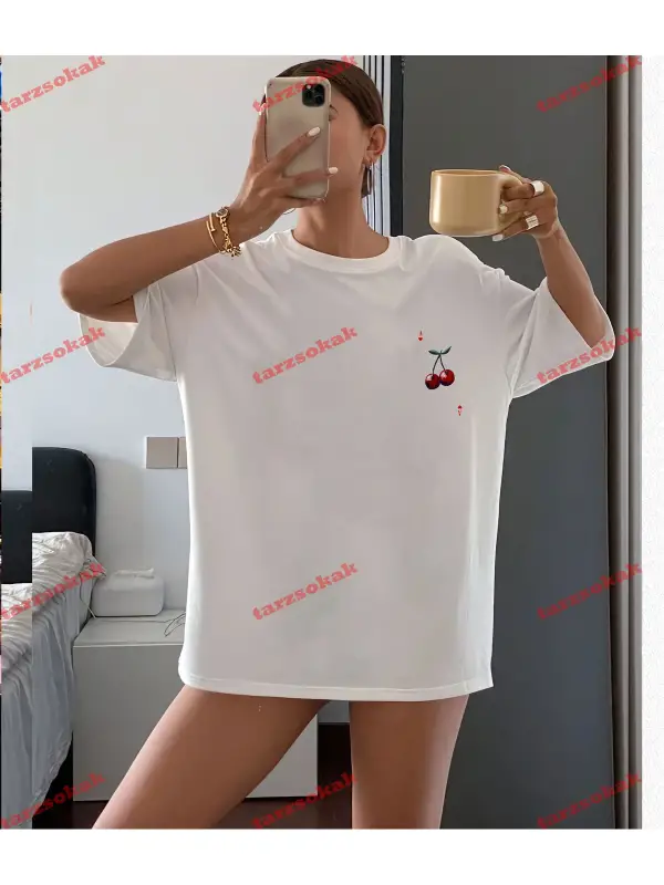 Unisex Erkek/Kadın KURDELE Renkli Özel Baskılı Oversize Pamuklu Bisiklet Yaka T-Shirt
