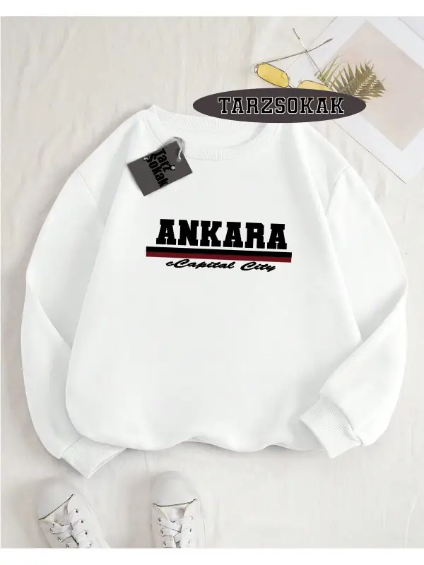 Biskilet Yaka Sweatshirt Beyaz ankara capital city Özel Tasarım Plaka Detaylı