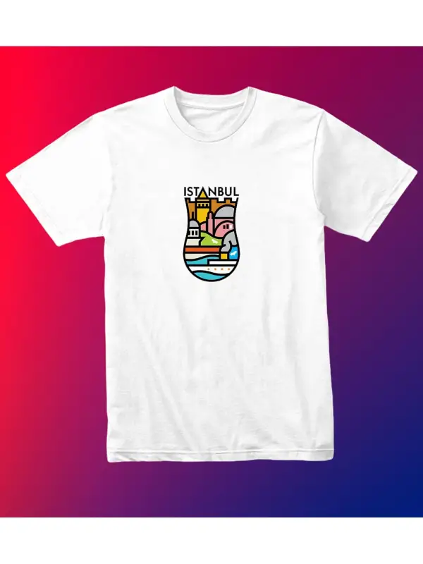 Unısex Kadın Erkek Hediye Istanbul Yedi Tepe Baskılı Çay Bardak % 100 Pamuk Tasarım T-shirt