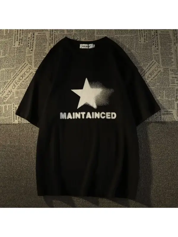 Yıldız Grafikli Yuvarlak Yaka Kısa Kollu Tişört