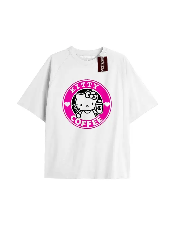 Beyaz Karikatür Sevimli Kedi ve Köpek Desen Eğlenceli Tshirt bol Tees Sokak Serin Kısa