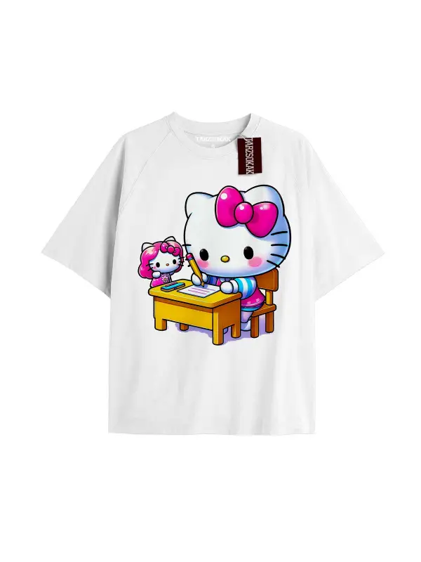 Kapşonlu Sweatshirt Hello Anime Kız Sevimli Karakter Baskılı