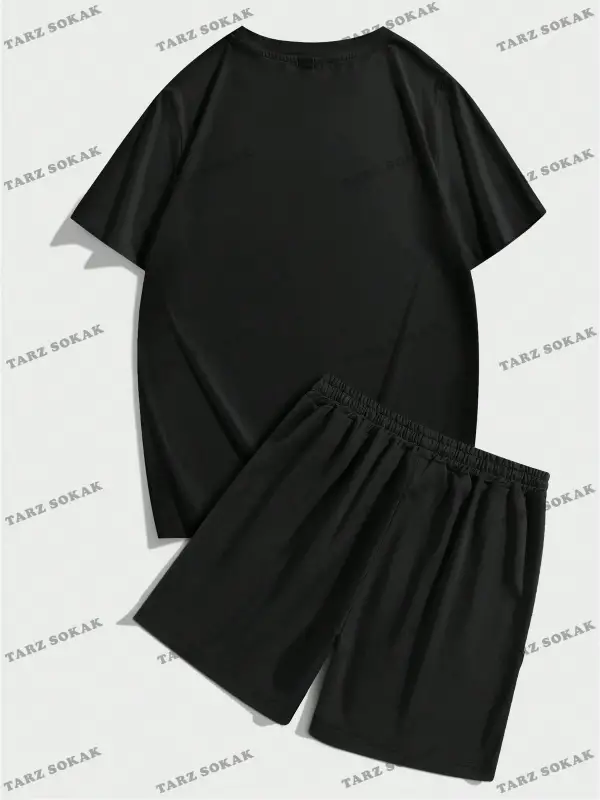 Homme Erkek Yazılı Baskılı T-Shirt Ve Şort 2 Adet/Takım
