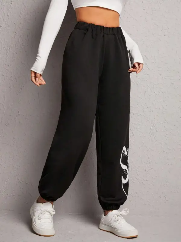 Letter Graphic Elastic Waist 4 Mevsim Eşofman