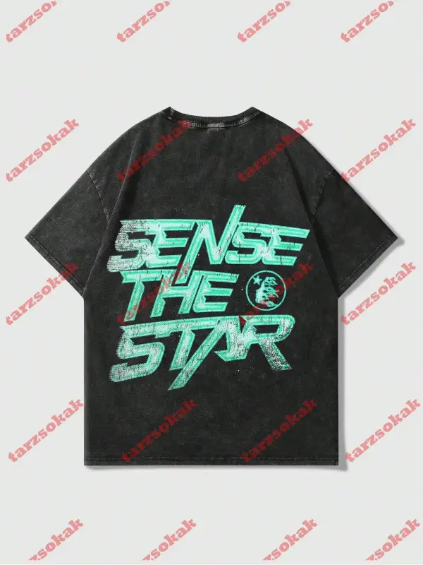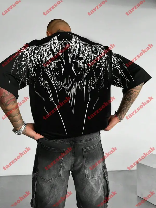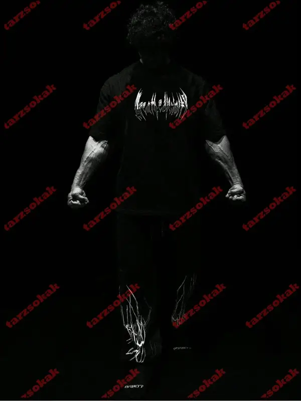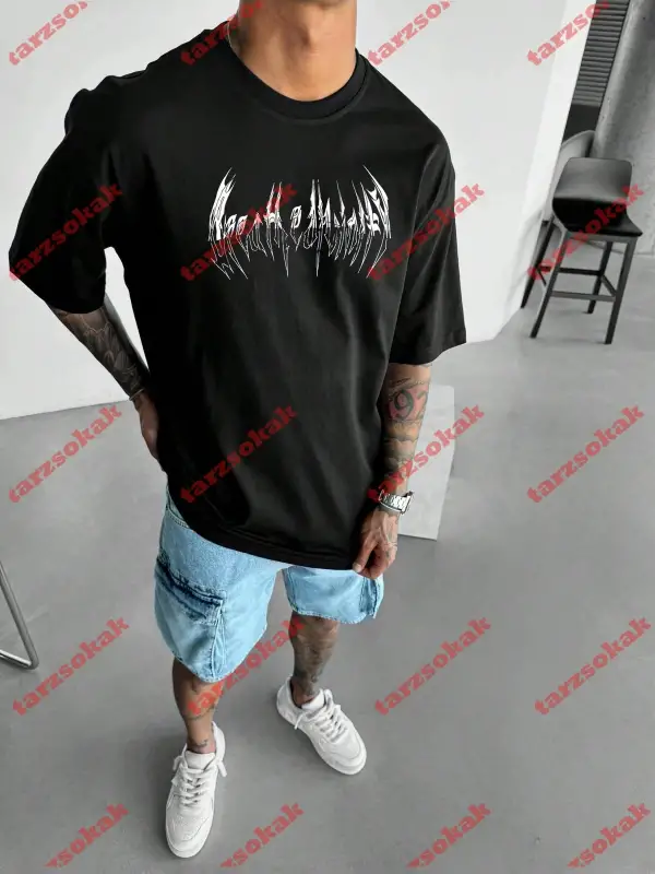 Siyah Oversize Çift Renk BRON TU BE Baskılı Unisex Tshirt
