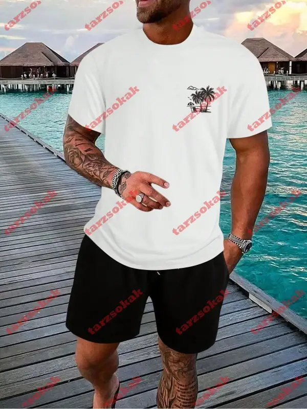 Model 3601 Erkek Yazlık Yuvarlak Yaka Kısa Kollu Günlük Tişört, Yaz