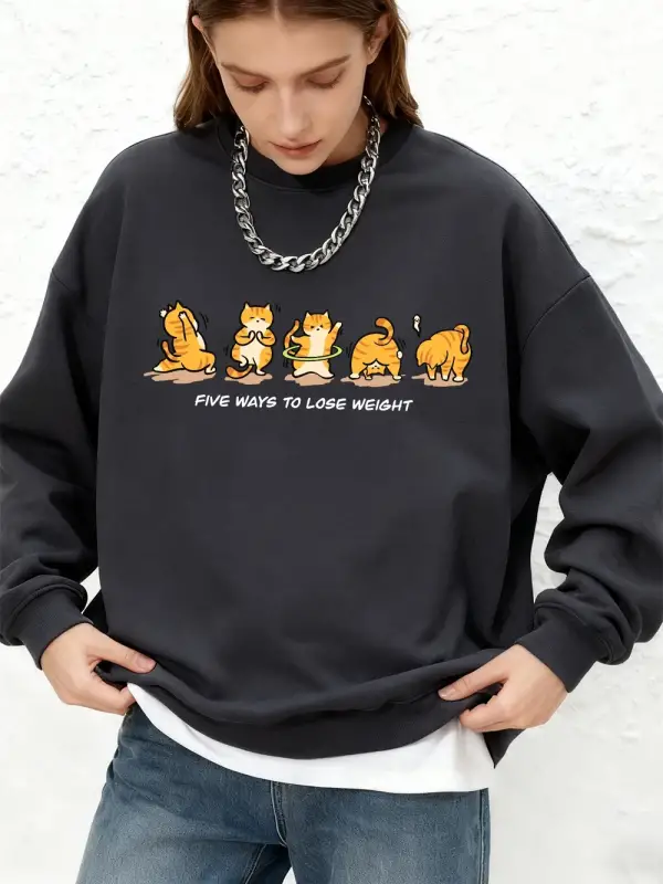 Kedi Kilo Kaybı Yapıyor Baskılı Kapüşonlu Üstler Kadınlar İçin Kışlık Sıcak Uzun Kollu Sweats