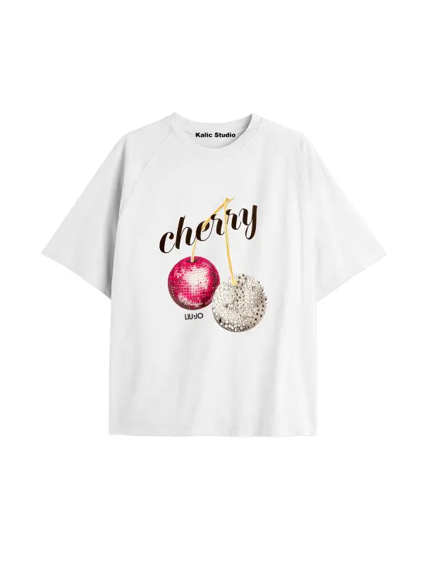 Y2k vintage Cherry Baskılı Sİyah T-shirt KOD 66