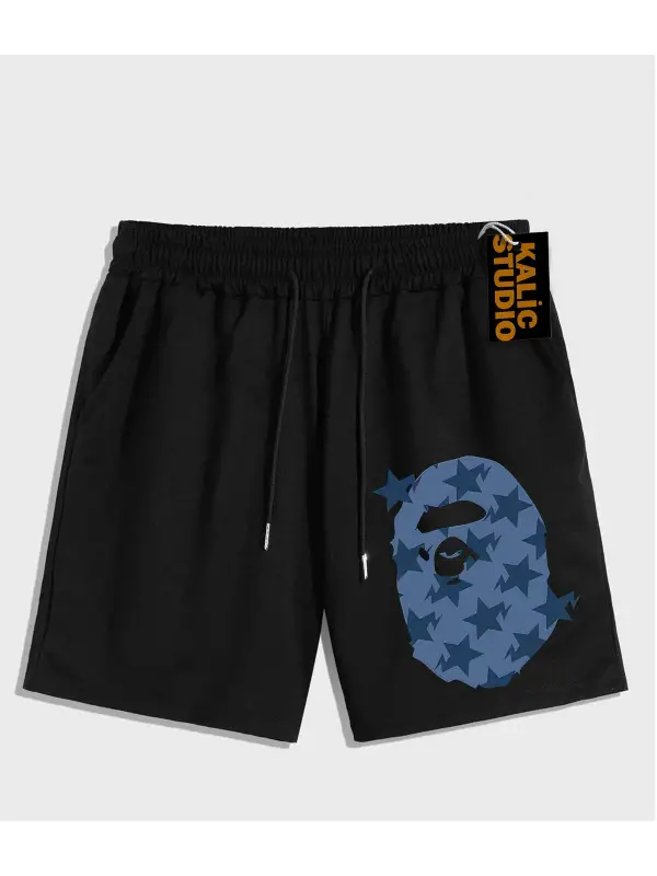 UNİSEX Bay Bape Desenli Siyah Yazlık ŞORT