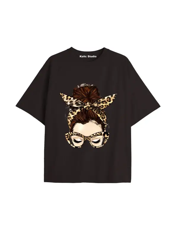 Y2k vintage Leopar Baskılı Sİyah T-shirt KOD 176