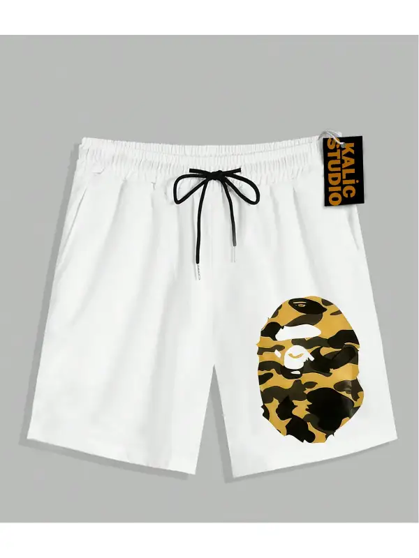 UNİSEX Bay Bape Desenli Beyaz Yazlık ŞORT