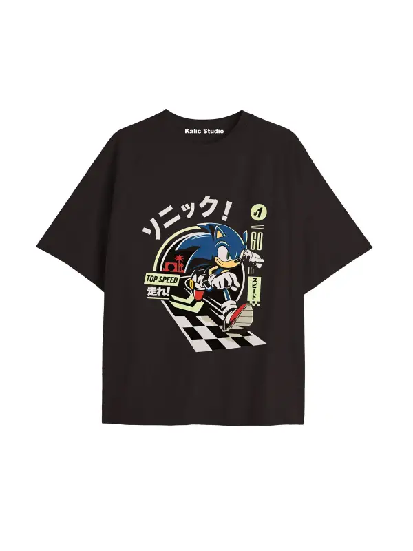UNİSEX Bay Sonic Desenli Siyah Yazlık T-shirt