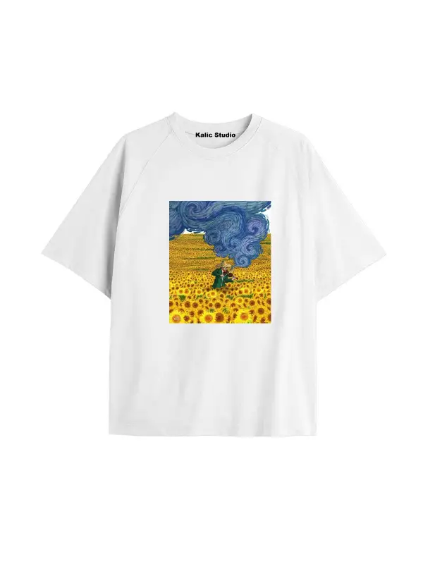 Unisex Van Gogh Baskılı Oversize Tshirt