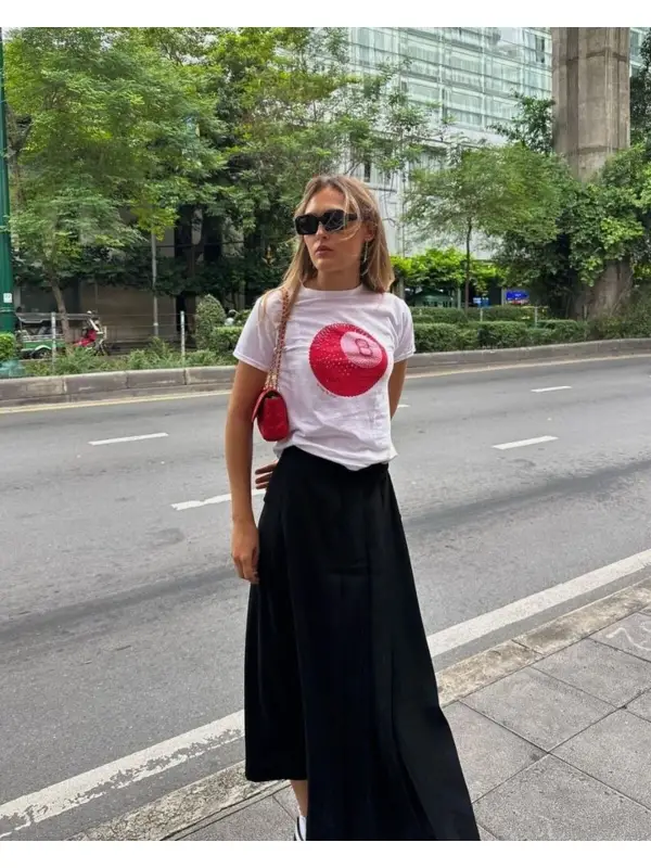 Bilardo Topu Baskılı Pamuklu Tişört T-shirt Beyaz