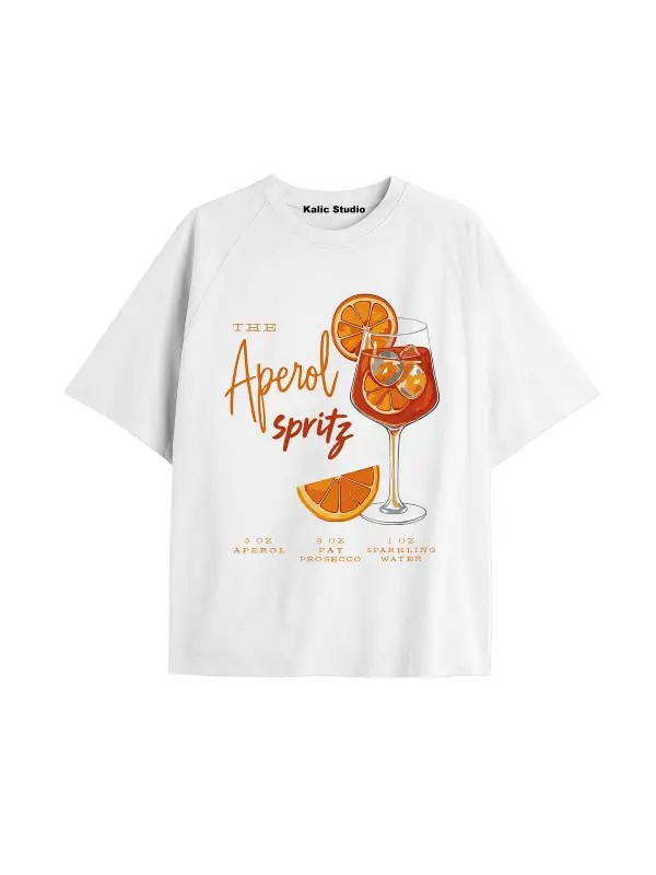 Kadın Oversize Aperol Spiritz Tshirt Beyaz