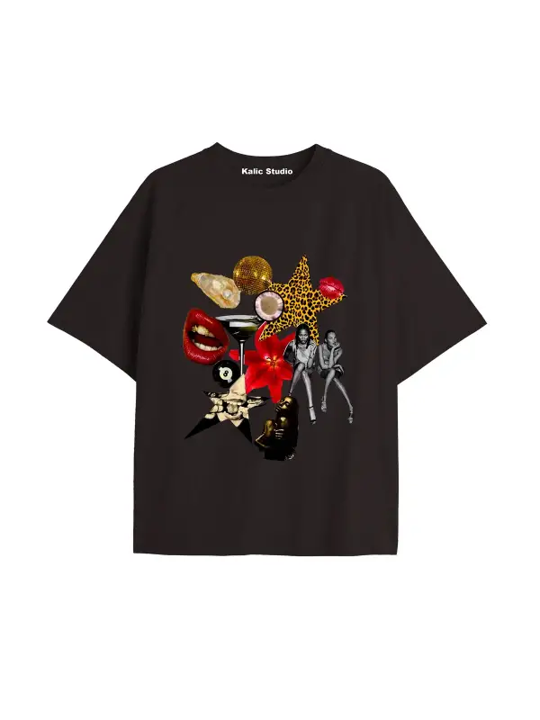 Y2k vintage Cats Baskılı Sİyah T-shirt KOD 21