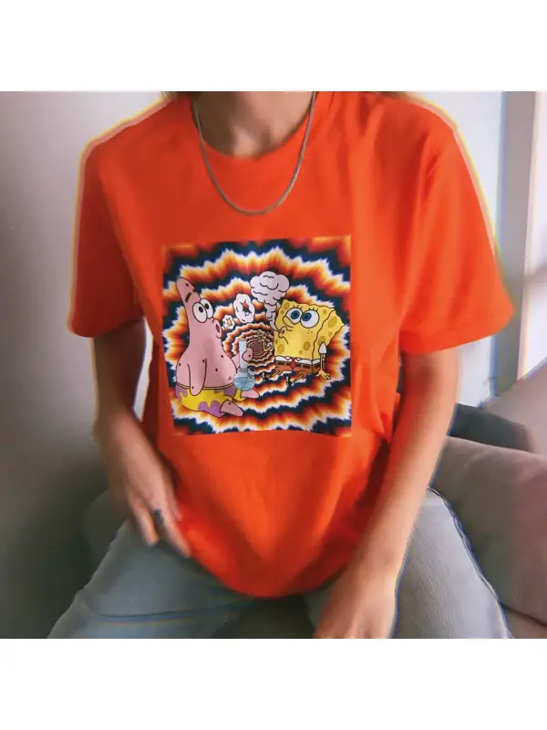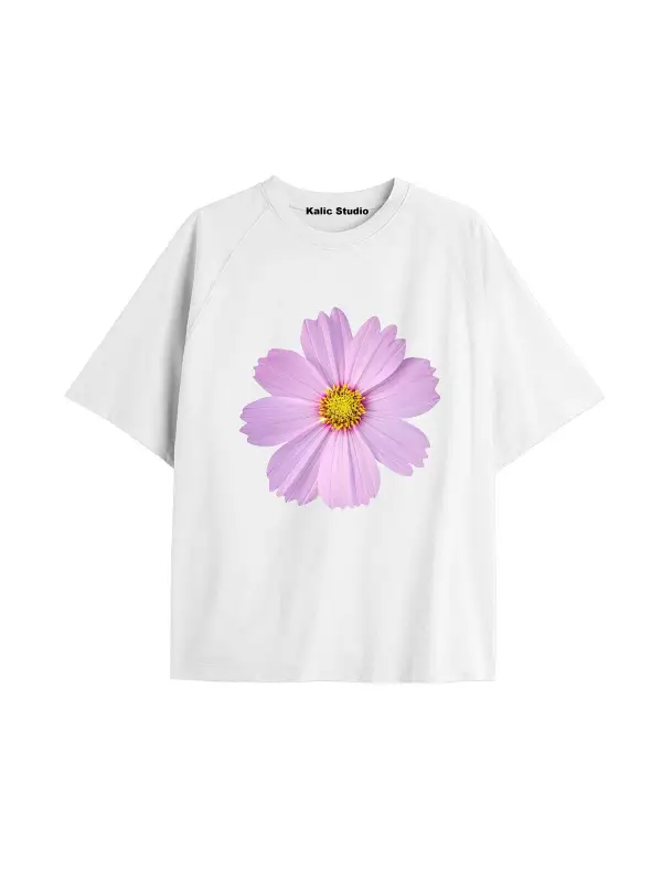 Kadın Çiçek Özel Baskılı Renkli Oversize Penye Pamuklu Bisiklet Yaka T-Shirt