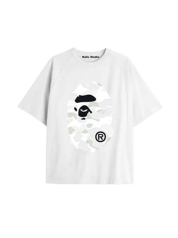 UNİSEX Bay Bape Desenli Beyaz Yazlık T-shirt